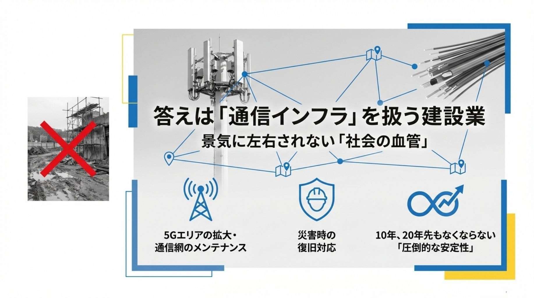 しかし、通信インフラは電気や水道と同じく、現代社会にとって「止まってはならない血管」のような存在です。