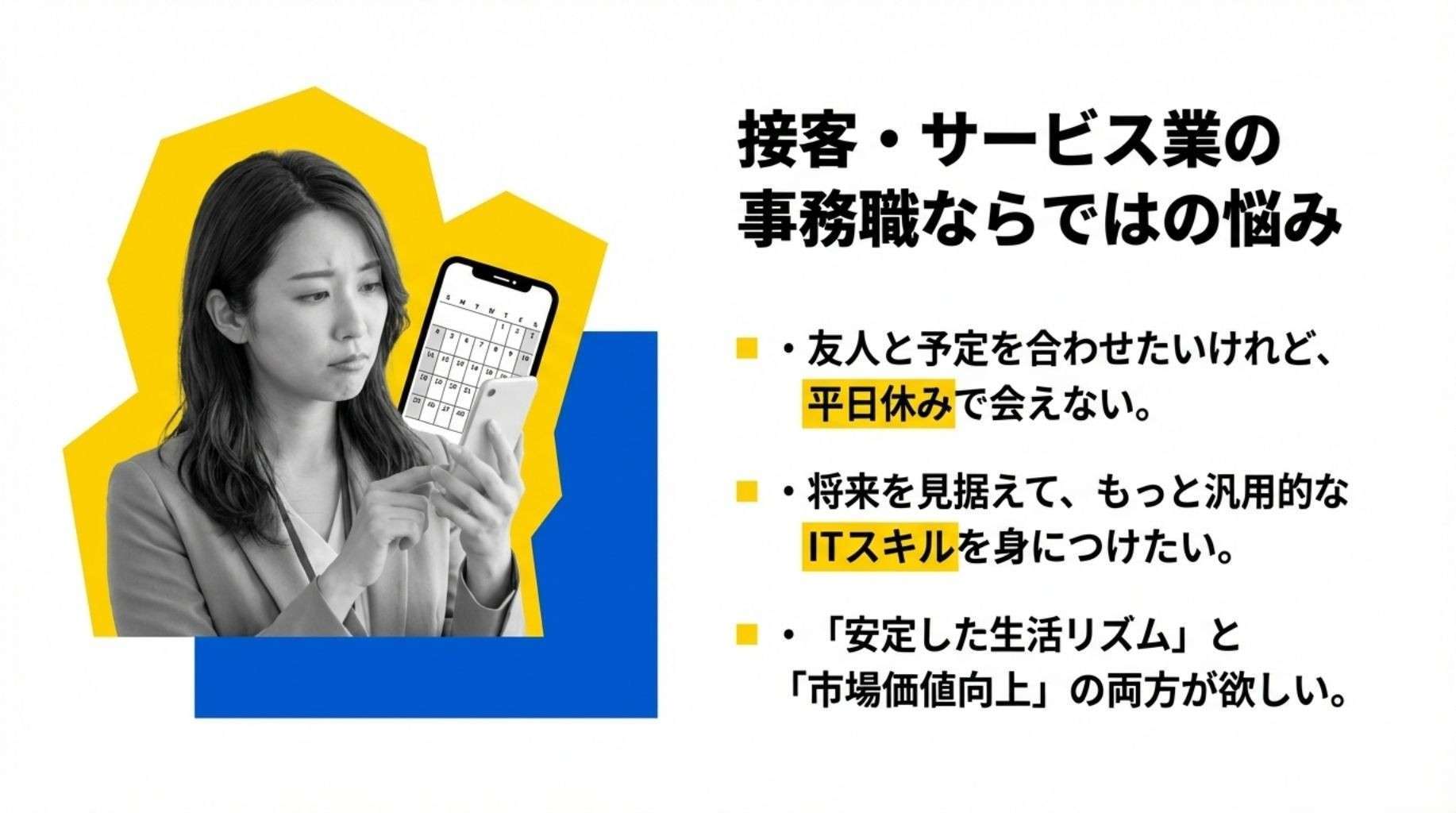 本記事では、あなたの「調整力」や「事務経験」を活かしながら、土日祝休みの安定とITスキルを手に入れるキャリアについてお伝えします。